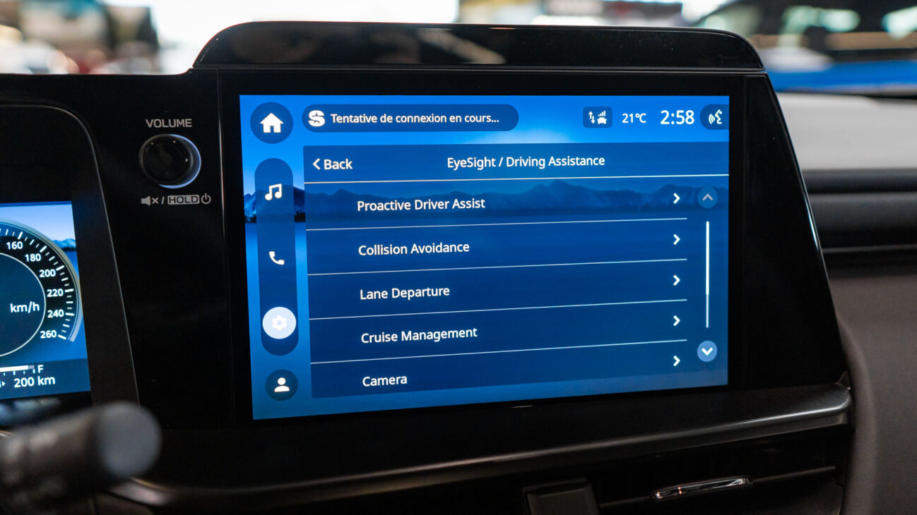 Infotainment Subaru Outback tvoří 12,1″ vertikální dotykový displej s vysokým rozlišením doplněný 12,3″ digitálním přístrojovým panelem a nabízí bezdrátové Apple CarPlay i Android Auto, Bluetooth hands-free, USB-A/USB-C konektory, podporu FM/AM a DAB+ rádia, online služby Google resp. Google Assistant pro hlasové ovládání, zábavu a vybrané aplikace. Řidiči mohou na displeji spravovat klíčové komfortní funkce vozidla, jízdní režim a vytvářet personalizované profily pro individuální nastavení. Díky externím modulům je systém kompatibilní s Bluetooth 5.2, zatímco Spectra ISP vylepšuje funkce kamery o HDR a výkon za slabého osvětlení.